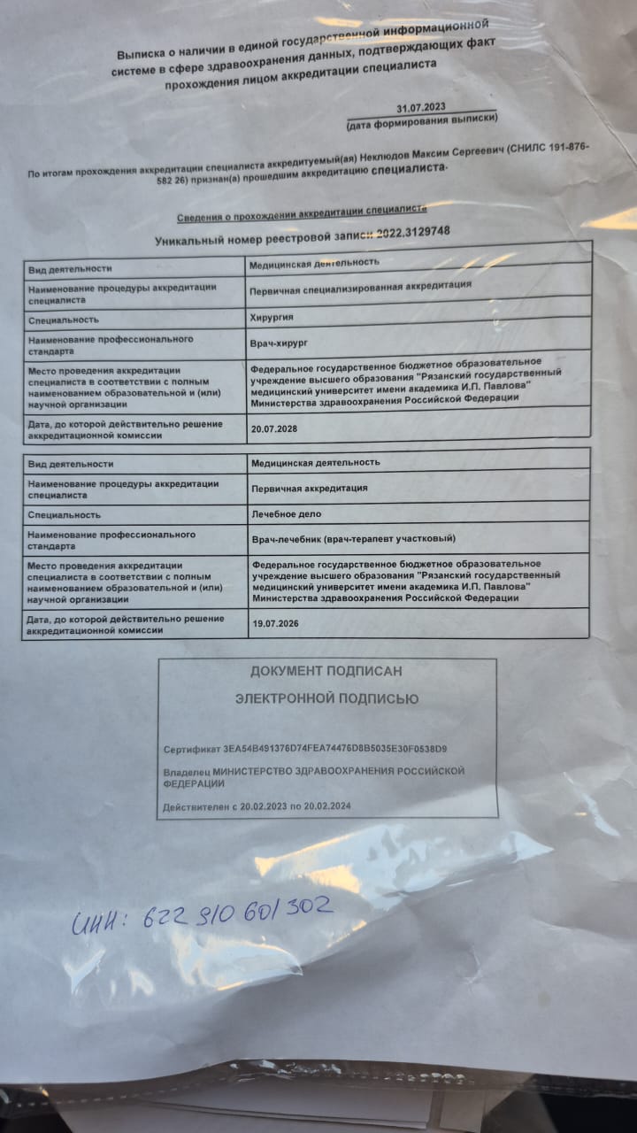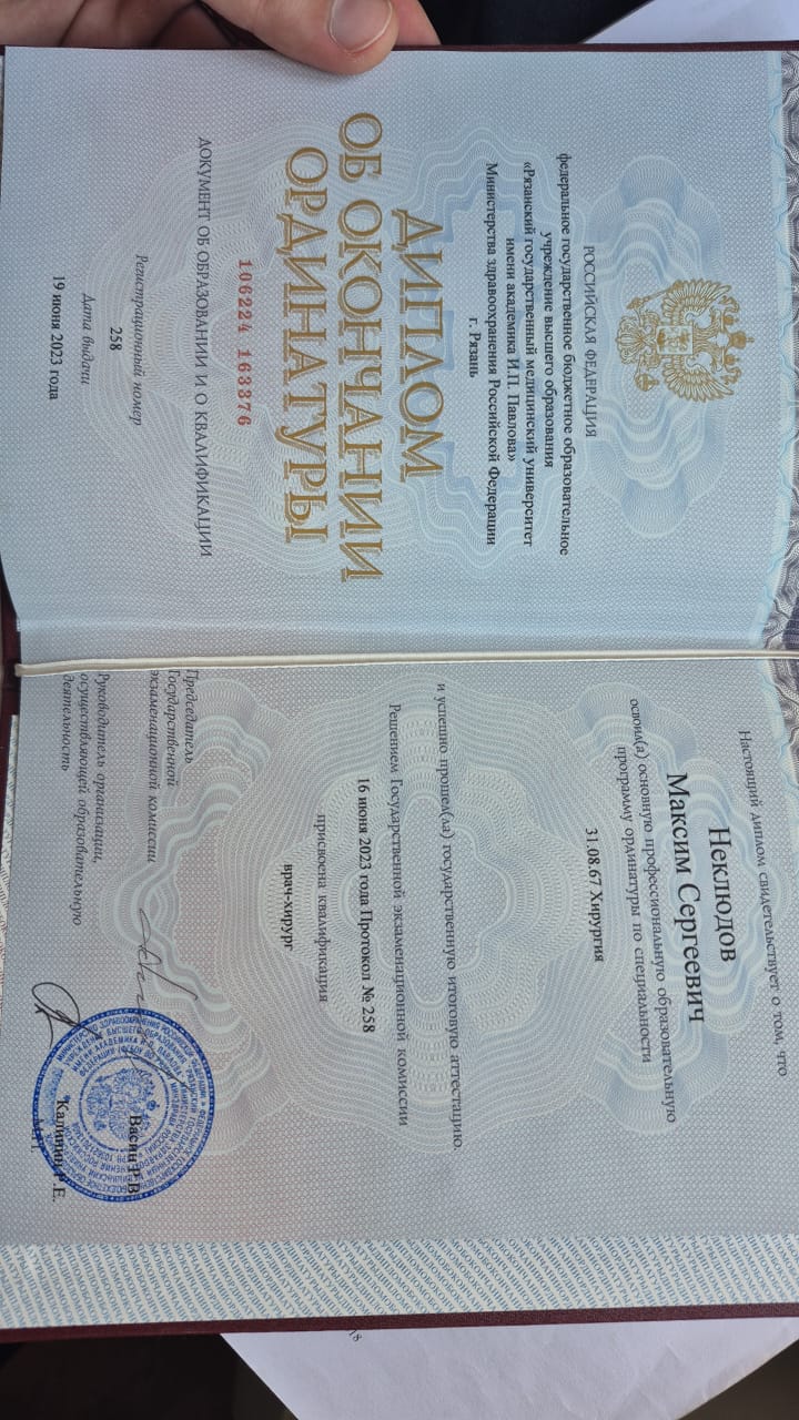 16.06.2023 — Рязанский государственный медицинский университет им. И. П. Павлова, ординатура, «Хирургия»